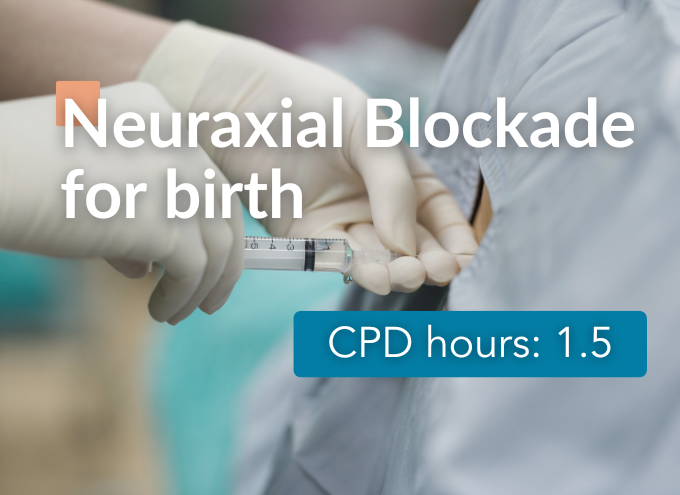 1. Understand the differences between epidural; spinal; and combined epidural/spinal anesthesia. 2. Discover the history and current statistics. 3. Discuss the potential side-effects and complications. 4. Describe consent. 5. Understand the midwife role in preparation, administration and ongoing care. 6. Achieve appropriate management strategies when complications are identified. 7. Maintain contemporaneous documentation for neuraxial blockade. 8. Ensure applicable follow-up care is provided.